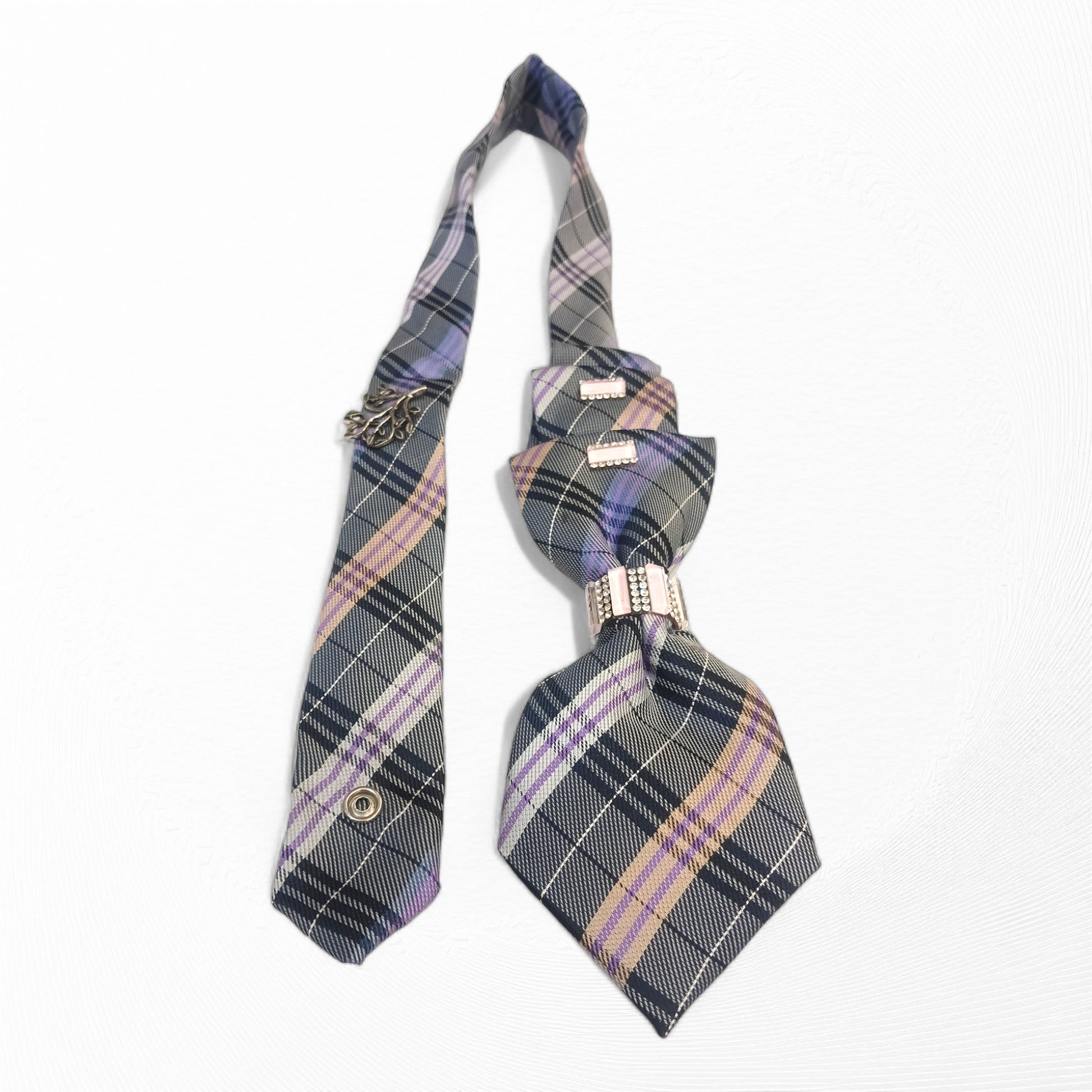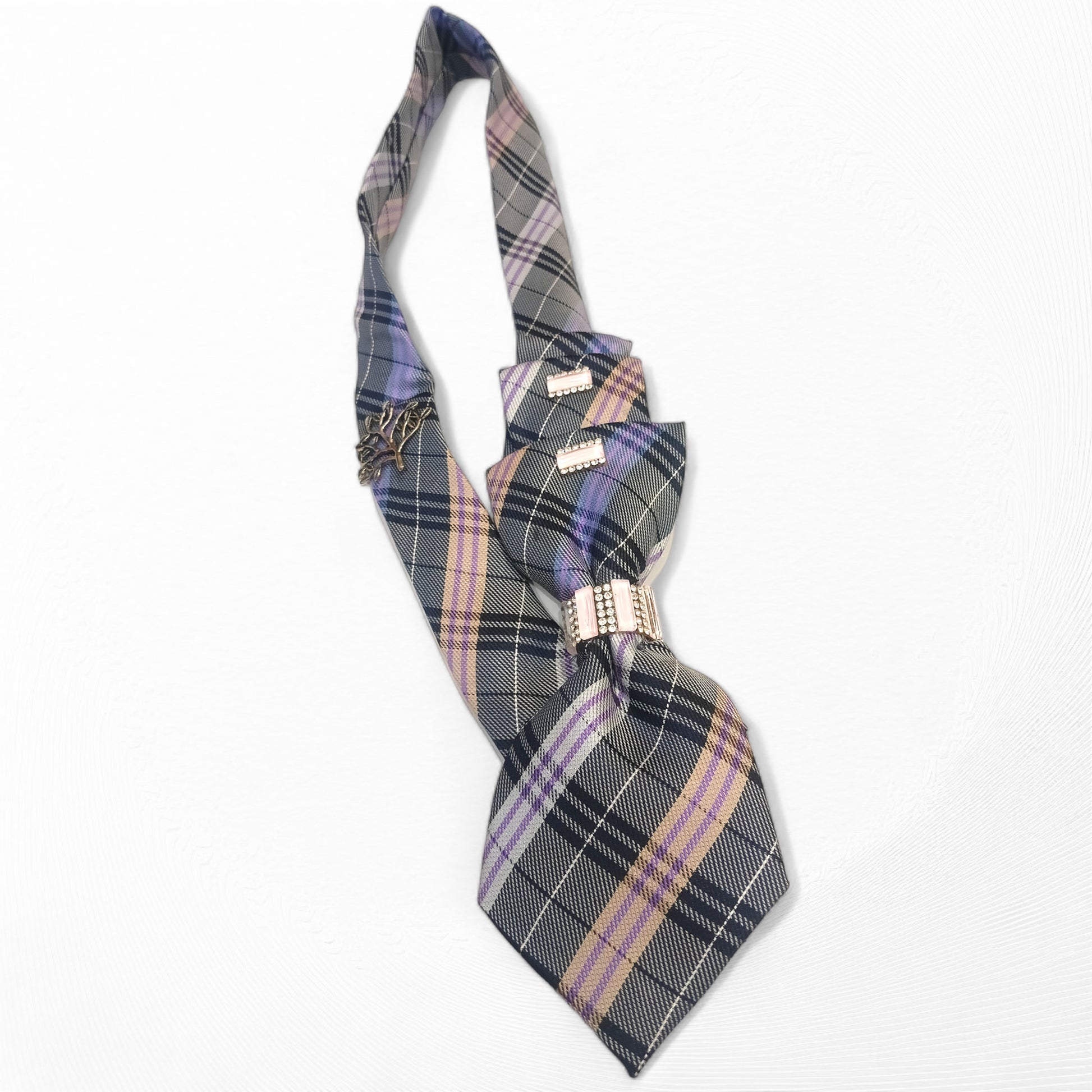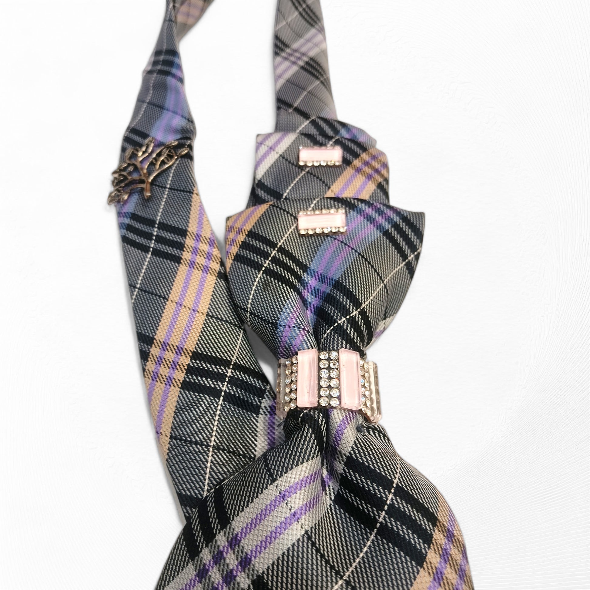 Be a part of revolutionary fashion fusion with our classic style necktie necklace. Meauiful’s Elegant Checkered Necktie Necklace is a unique accessory that is captivating for a fashion-forward wardrobe. The fabric necklace is tailored and made from a tie, appreciating innovation and sophistication. The necktie necklace seamlessly mixes contemporary flair and traditional aesthetics. Our local artisans have handcrafted this Black, Grey and Pink Checkered Necktie Necklace features a playful blend of hues, excluding redefined elegance.