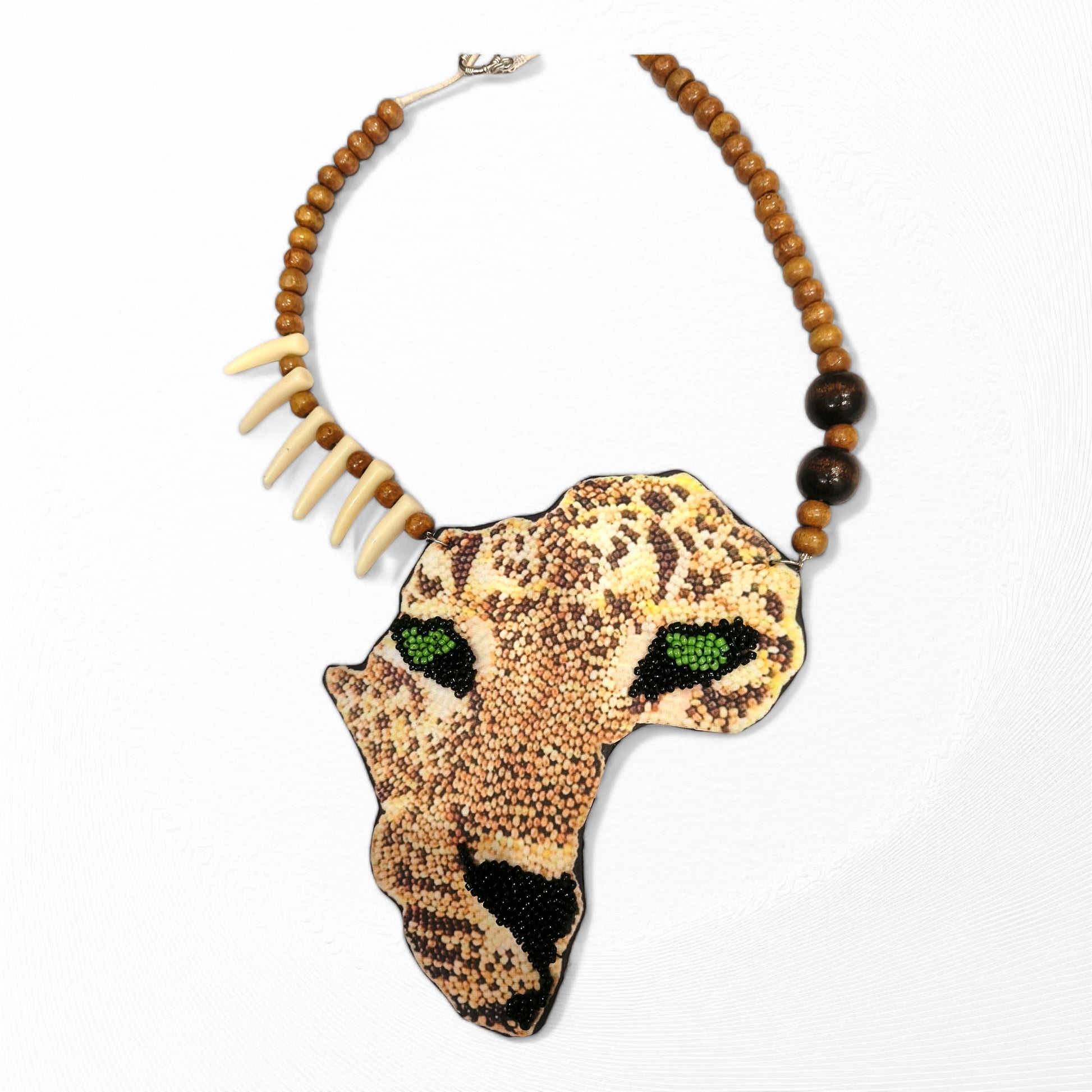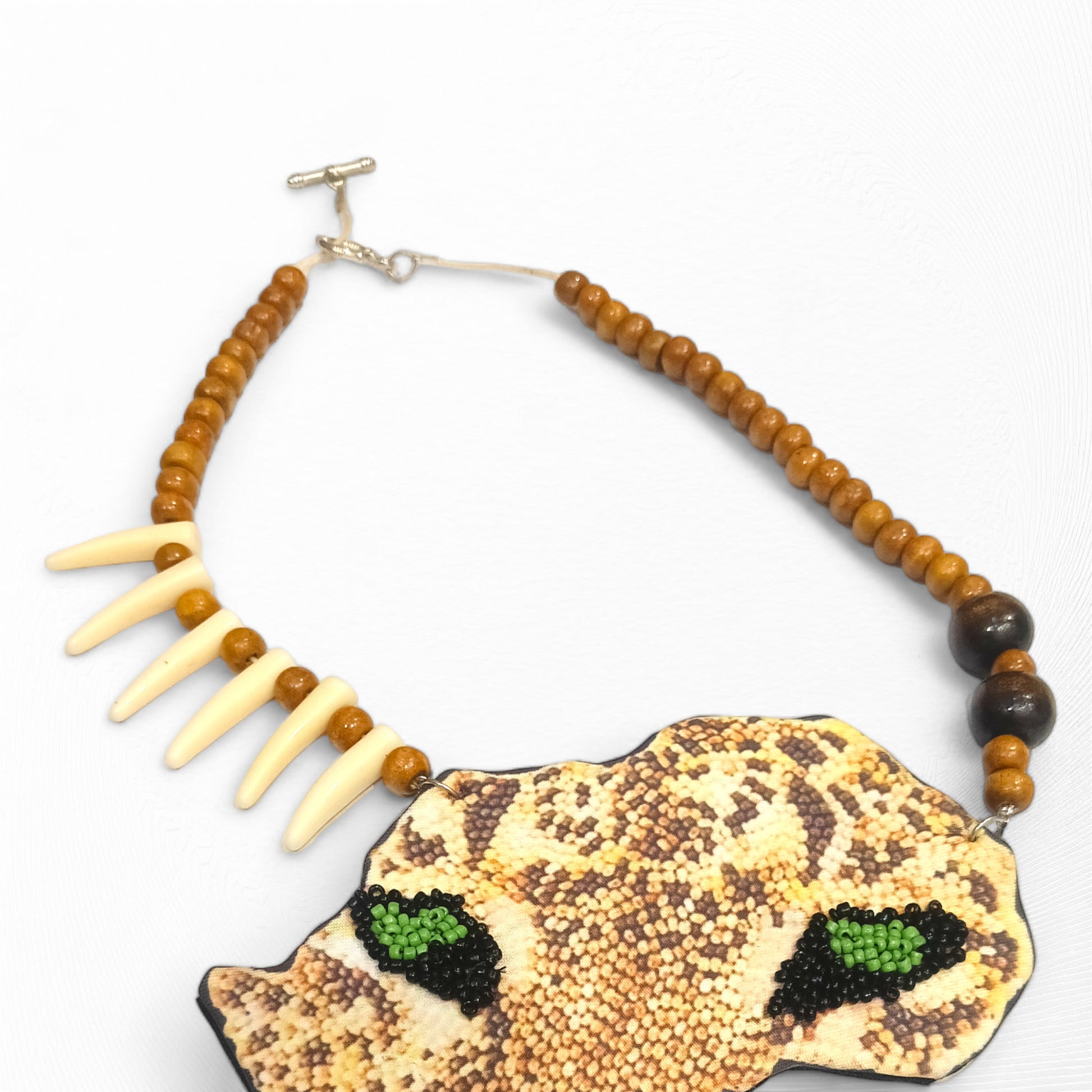 Hop on the adventurous ride with Meauiful's Mystical Tiger Mask Long Beaded Neckalce. It is a great craftsmanship of Indian artisans blending unique designs and materials. This fabric bead necklace features a smooth chain of polished brown and white beads resembling the Tiger's teeth. Meauiful's beaded necklace native has a striking pendant. It has a handcrafted tiger mask of fabric adorned with beautiful green and black seed beads. Overall, this tribal beads necklace symbolizes protection, beauty and power of nature. Wearing this African beads necklace, your overall personality will symbolize grounding and stability. Meauiful's Mystical Tiger Mask Long Beaded Necklace adds playful elements while tapping into inner courage and strength. Overall, it's a long beaded necklace designed for different occasions. Wearing this necklace all day long is super comfortable as it is lightweight. Shop now this attractive necklace full of exotic charm and a different style to complement your outfit.